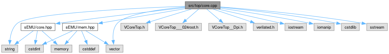 #include "sEMU/core.hpp"#include "sEMU/mem.hpp"#include "VCoreTop.h"#include "VCoreTop___024root.h"#include "VCoreTop__Dpi.h"#include "verilated.h"#include <iostream>#include <iomanip>#include <cstdlib>#include <string>#include <vector>#include <sstream>